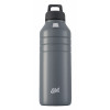 Bouteille robuste à simple paroi en acier inoxydable 18/8 avec revêtement en poudre gris, bouchon à boucle pratique pour le transport et capacité de 1 litre de liquide. Facile à ouvrir et dotée d'une grande ouverture facile à nettoyer. Sans BPA et 100 % étanche.